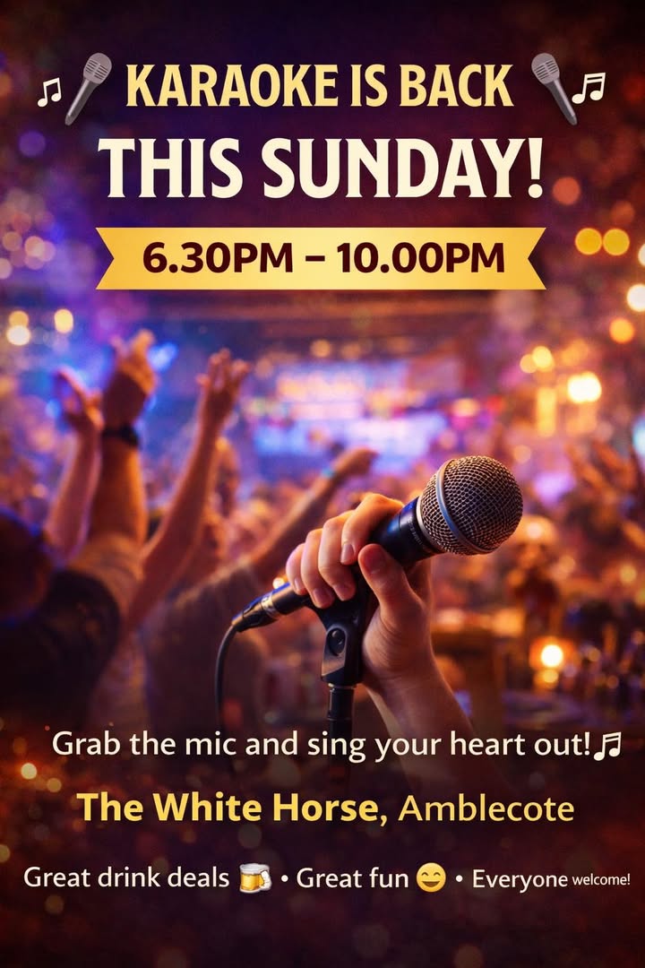 🎤🎶 KARAOKE IS BACK THIS SUNDAY! 🎶🎤 You asked… we delivered 😜 Join us for a brilliant night of singing, laughs and great atmosphere! 🗓 THIS SUNDAY ⏰ 6.30PM – 10.00PM Grab the mic, pick your song and sing your heart out 🎤 Whether you’re a superstar or just in it for the fun, it’s all about the banter! 🍻 Great drink deals 😄 Great crowd 🎶 Great Sunday night at your local 📍 The White Horse, Amblecote