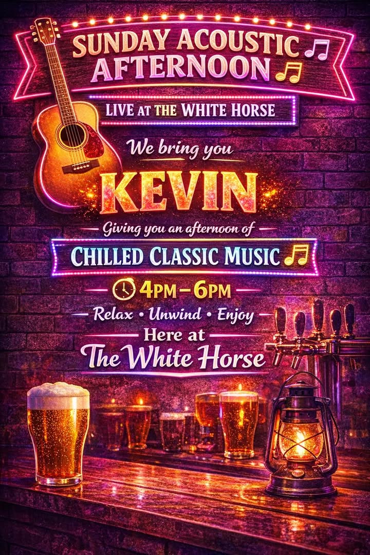 πΈπΆ SUNDAY ACOUSTIC AFTERNOON πΆπΈ Join us here at The White Horse for a chilled Sunday session π»β¨ We bring you KEVIN giving you an afternoon of π΅ Chilled Classic Music π΅ π 4PM β 6PM Sit back, relax and enjoy the perfect Sunday vibesβ¦ πΊ Great drinks πΆ Great music π Great atmosphere Relax β’ Unwind β’ Enjoy π Here at The White Horse